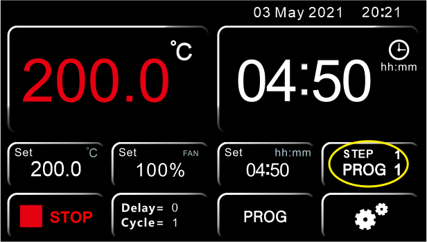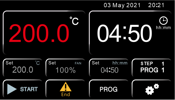 Once the delay has been set, by pressing the START key the instrument starts the program, but does not immediately start to heat up. Once the set delay time has elapsed, the instrument starts the heating and the set timer appears on the display.