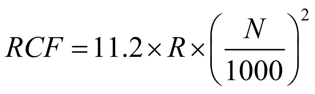 Separation is determined by the Relative Centrifugal Force (RCF), which is influenced by the rotor speed ( N ) (r/min) and the centrifugal radius ( R ) (cm). The formula for calculating RCF is as follows:The conversion coefficient 1.12 is derived from gravitational acceleration (1g=9.81m/s2)) as an approximate factor, making the result a product of the value and gravitational acceleration.