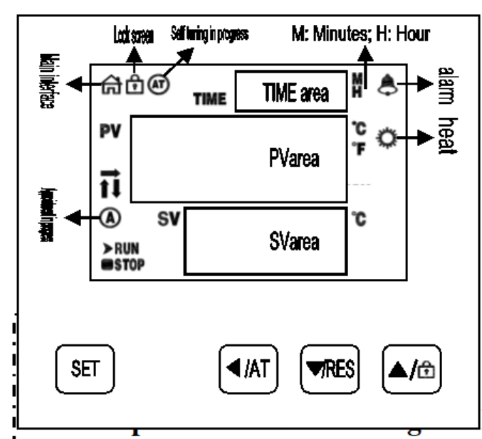 1. [SET]: Set button. When the main interface displays the status, click this button to enter the temperature and time target value setting state. Long press this button f